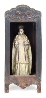 Height of figure: 12 inches. height of shrine: 19 inches.