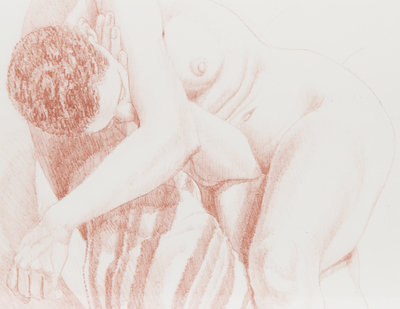 possibly Apollo, depicted nude with a draped garment.