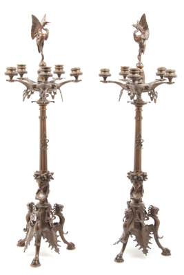 A Pair of Neoclassical Bronze Five Light Candelabra