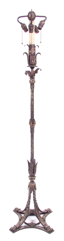 having an octagonal standard with leaf decoration raised on a four part base with winged putto masks ending in paw feet.