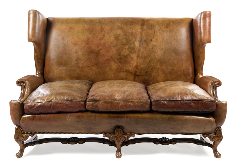 An English Leather Wingback Sofa