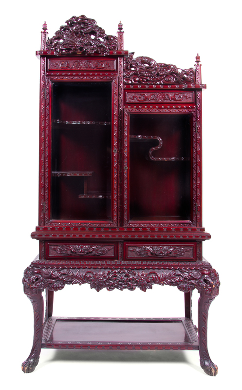 A Chinese Hardwood Carved Vitrine