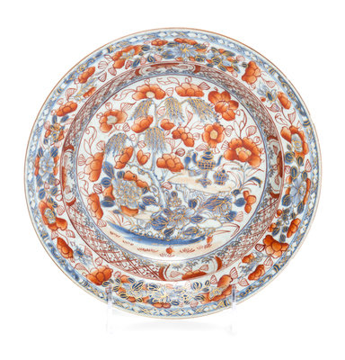 decorated with flowering trees in tones of iron red, cobalt and gilt.