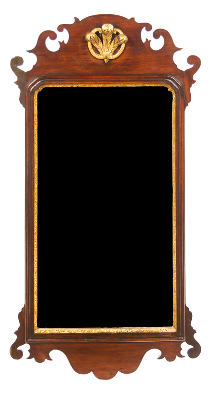 the crest centered with a gilt Prince of Wales plume, set with a rectangular plate within a gilt bezel.