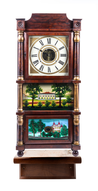 A Federal Mahogany and Eglomise Mantel Clock