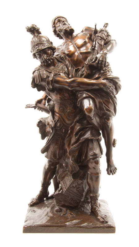 depicting Aeneas, Anchises and Ascanius, signed P Lepautre.