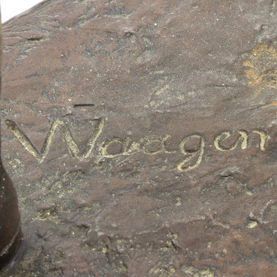 depicting the boxer John L. Sullivan with raised fists, signed Waagen at the base.