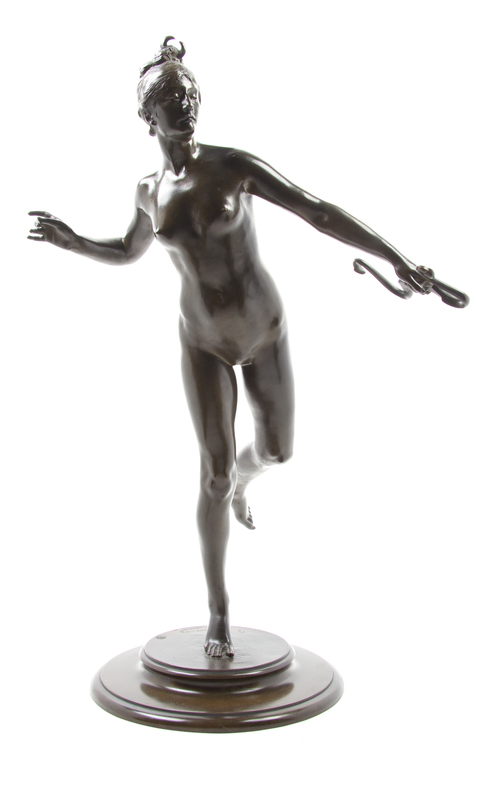 Diana, signed F MacMonnies, 1890, copyright 1891, with an E. Gruet Paris foundry mark.
