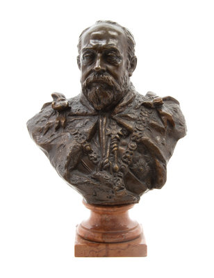 depicting Edward VII, signed indistinctly at the back and raised on a marble socle.