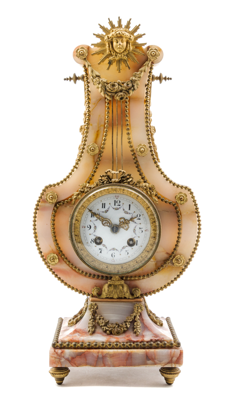 of lyre form, the circular dial with Arabic numerals, having time and strike movement.