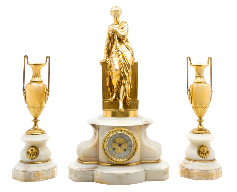 A French Gilt Bronze Mounted Onyx Clock Garniture