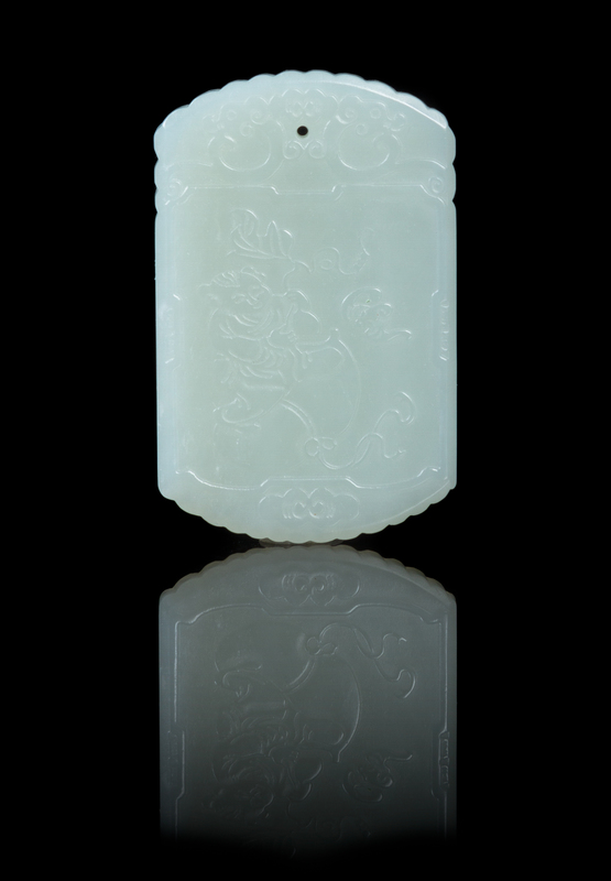 A Carved Pale Celadon Jade Plaque