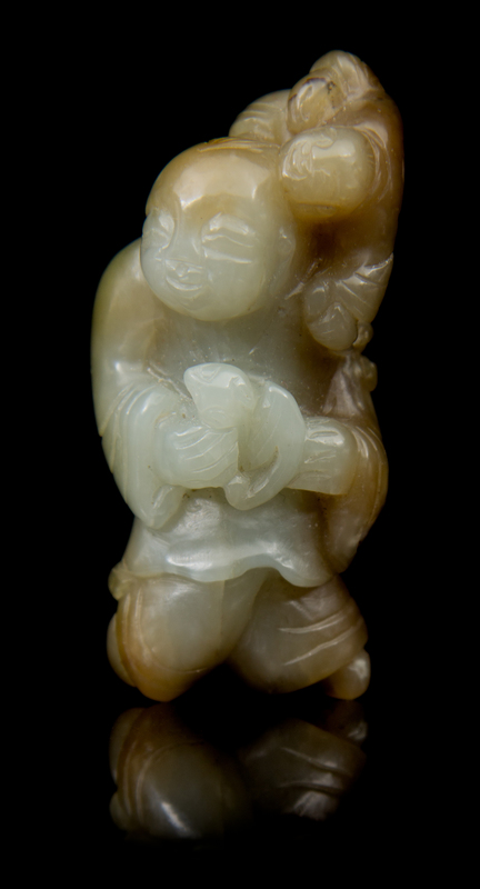 the celadon and russet stone depicting children at play.