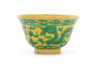 A Yellow and Green Glazed Porcelain Bowl