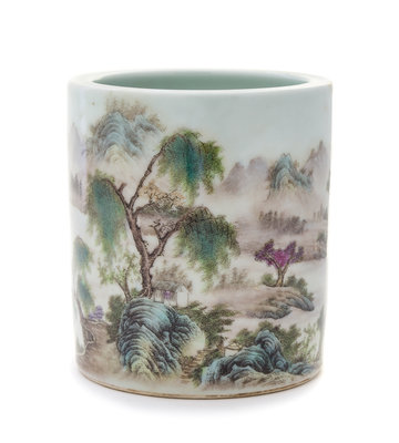 A Polychrome Enameled Porcelain Brush Pot, Bitong