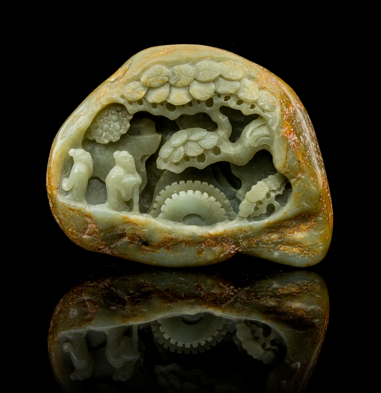 A Carved Celadon Jade Boulder