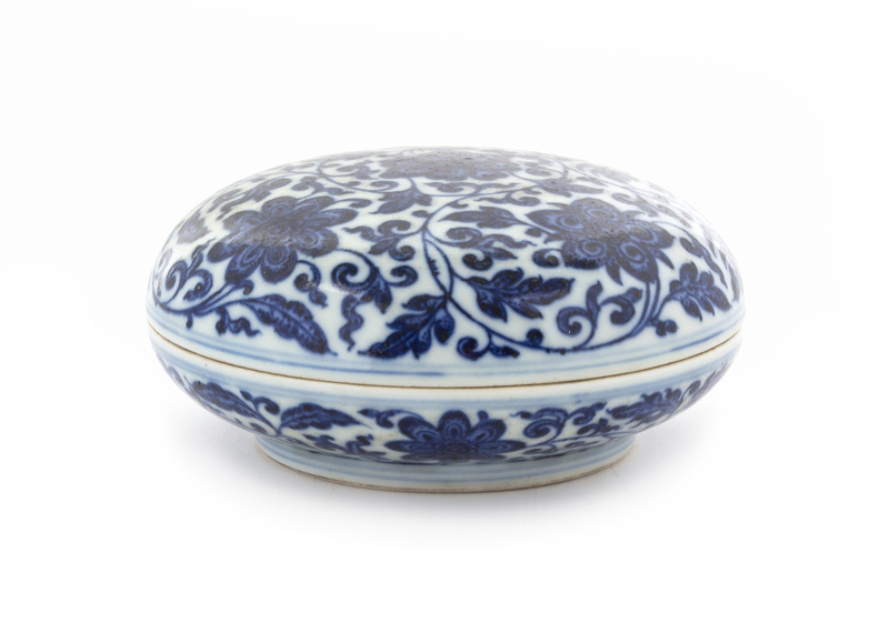 A Blue and White Circular Box and Cover