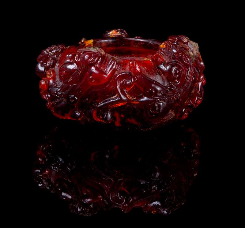 A Carved Amber Brush Washer