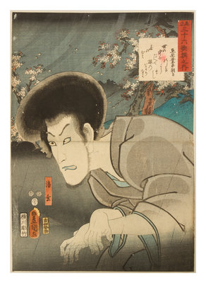 Poem by Ariwara no Narihira Ason: (Actor Ichikawa Danjuro VIII as) Seigen from the series Comparisons for Thirty-six Selected Poems, 1852