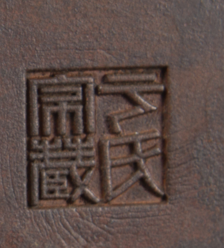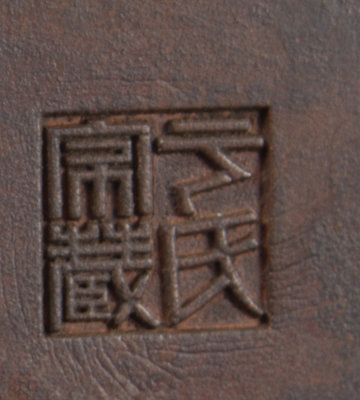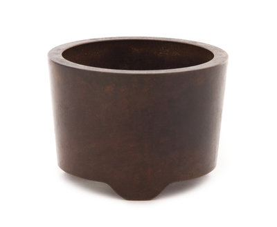of cylindrical form raised on three curved feet, the underside with an impressed four-character mark.