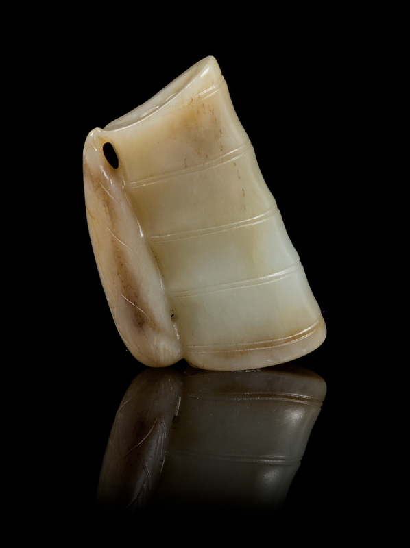 the celadon stone with grey hues, depicting a bamboo section with leaf.