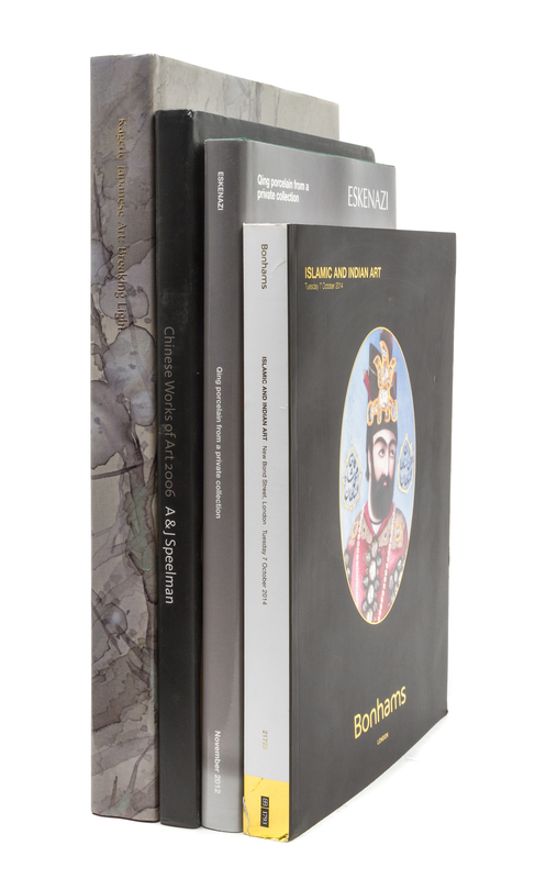 comprising A&J Speelman Chinese Works of Art 2006, hardcover; Eskenazi Qing porcelain from a private collection, November 2012, London, hardcover; The Chinese Porcelain Company Magnificence Within: New Ink Paintings By Tai Xiangzhou, March 15-23, 2013, New York, paperback; Kagedo Japanese Art Breaking Light: Arts of 20th Century Japan, Seattle, Washington, hardcover; Bonhams London Islamic and Indian Art, sale 21722, paperback.