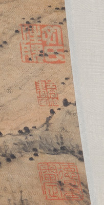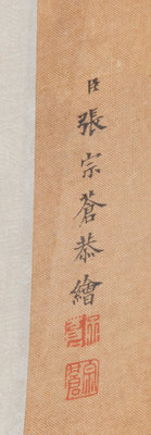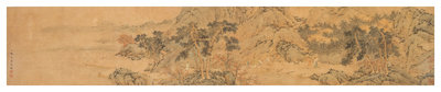 depicting figures in mountainous landscape with houses and trees emerging from rockery, followed by calligraphy signed by Li Mianchen and Ni Siling.