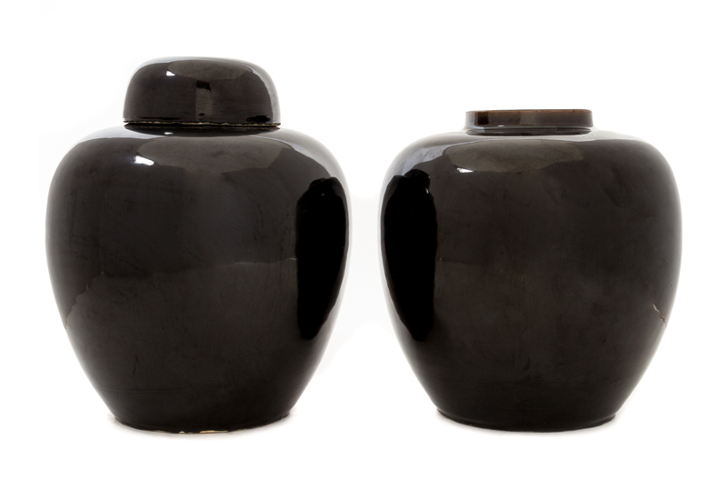 A Pair of Mirror Black Glazed Porcelain Ginger Jars