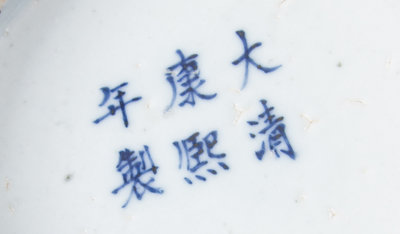 each of baluster form with broad shoulders, bearing a six-character Kangxi mark in underglaze blue to the underside, one jar missing the cover.
