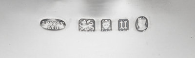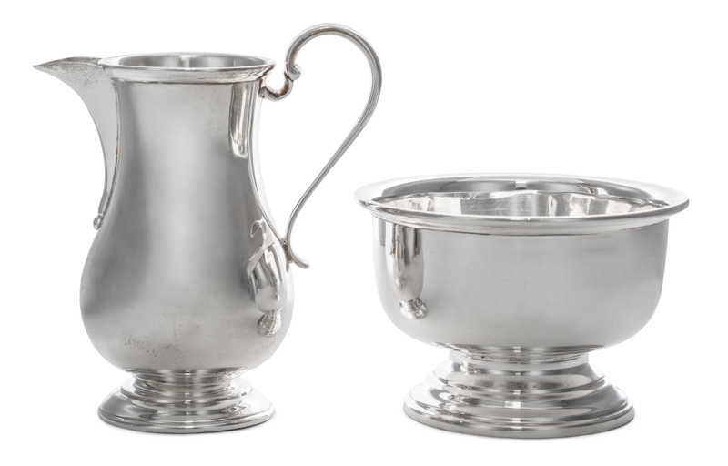 the creamer of baluster form with a scroll handle, the sugar circular on a stepped circular foot.