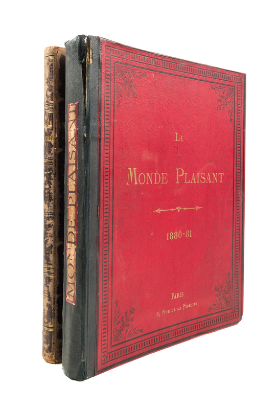 Le Monde Plaisant, Paris, 1880-1881, together with Album Lavrate, s.l., n.d. Both 4to, with numerous color illustrations after Edmund Lavrate throughout. Wear to boards; some plates detached.