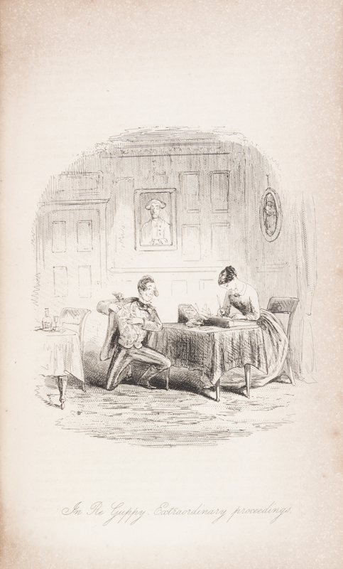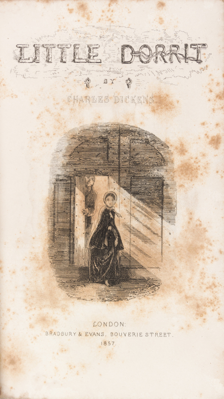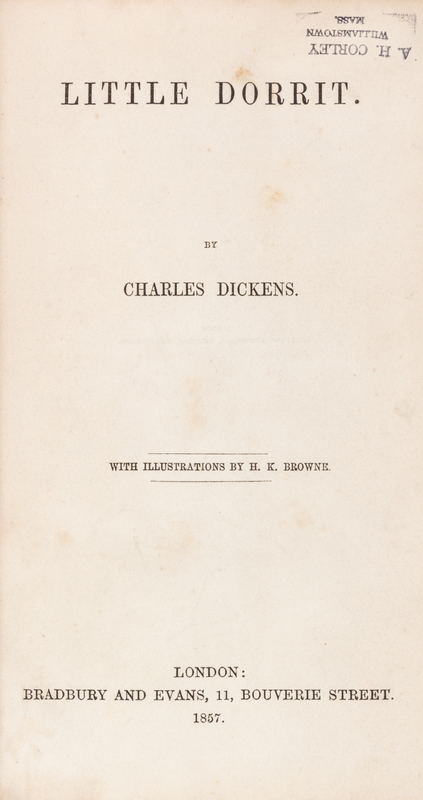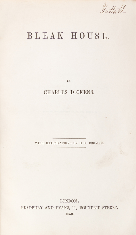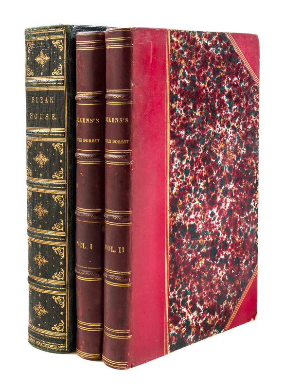 Little Dorrit. London: Bradbury and Evans, 1857.2 vols. 8vo, 3/4 red calf over marbled boards, gilt-lettered spines. First edition in book form. Minor wear and soiling to boards; bookseller's sticker to front pastedown; ownership stamp to title pages; intermittent foxing.[Together with:] Bleak House. London: Bradbury and Evans, 1853. 8vo, 3/4 green morocco over cloth, gilt-tooled and -lettered spine. First edition in book form. Edgewear; darkening to some leaves; scattered foxing.
