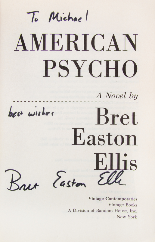A group of five books, three first editions, inscribed and signed, including, Glamorama (New York, 1998), American Psycho (New York, 1991), Lunar Park (New York, 2005) The Rules of Attraction (New York, 1987) and Less Than Zero (New York, 1995).