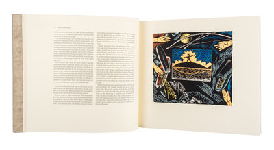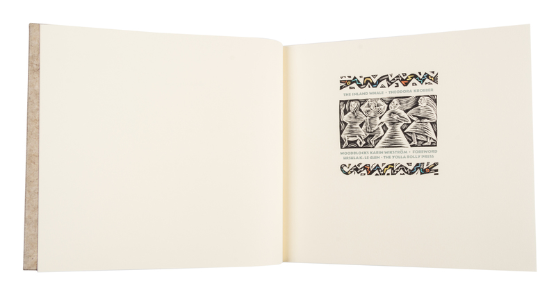 The Inland Whale. Foreword by Ursula K. Le Guin. [Covelo, CA:] The Yolla Bolly Press, (1987). 4to, string-bound flexible cloth over boards, woodcut paper cover label to upper board, housed in paper slipcase. Illustrated with nine full-page hand-colored woodblocks by Karen Wikstrom. First edition, number 73 of 135 limited edition copies, signed by the illustrator on the limitation page. With limitation and ownership statement laid into front. Light wear to slipcase.