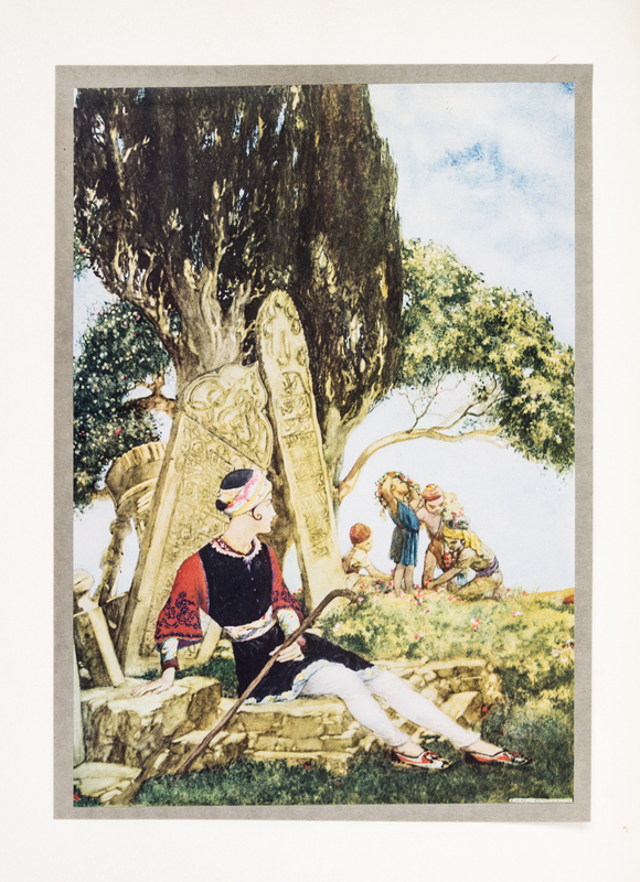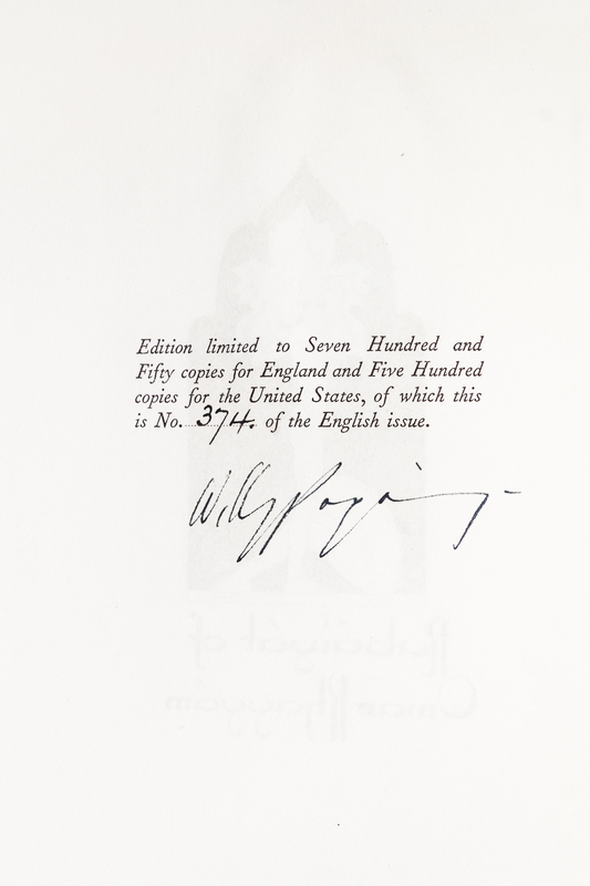 The Rubaiyat of Omar Khayyam. London: George Harrup, 1930. 4to, finely bound in full turquoise morocco with gilt-stamped to upper cover. Limited edition, 375 of 750 copies, signed by Willy Pogany. Some light rubbing to spine ends.