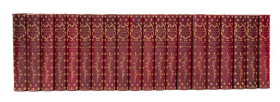Works. London: J.M. Dent, 1893-1894.60 vols. 8vo, bound by Morell in 3/4 maroon morocco over cloth, gilt-stamped and -lettered spines. Illustrated Library edition, number 48 of 50 copies printed in English. Minor edgewear; extremities of some leaves toned.