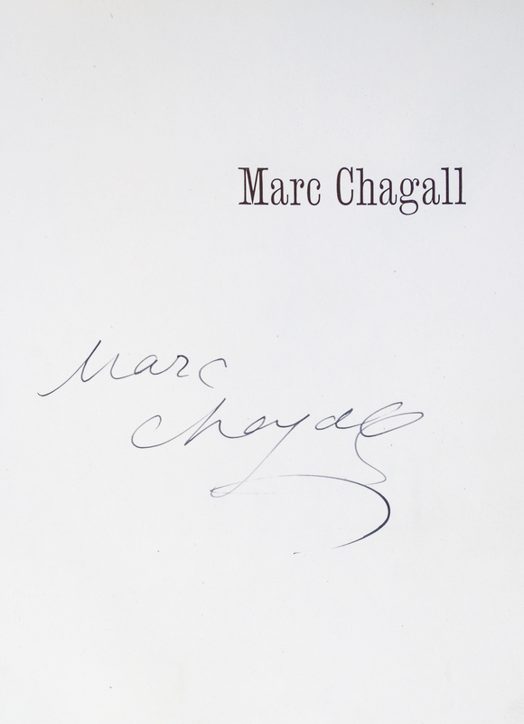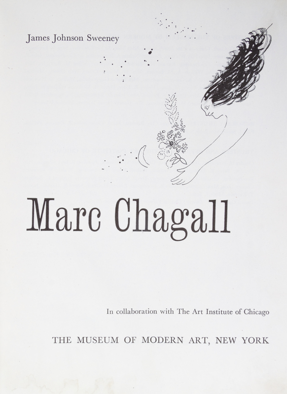 Marc Chagall. New York: The Museum of Modern Art, (1946).8vo, publisher's pictorial yellow cloth stamped and lettered in black and green. Signed by Chagall on the half-title. Wear and soiling to boards; light dampstaining to first few leaves.