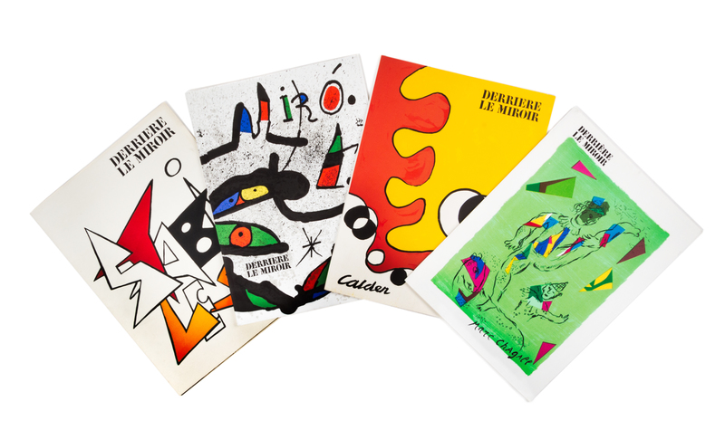 A group of eight issues of Derriere le miroir including Calder issues 113, 141 (lacking four of eight lithographs), 156, 173, and 212; Miro issues 231 and unknown (disbound, with nine original lithographs), and Chagall no. 235. Together with eight original loose lithographs from Calder and Chillida. 4to, original pictorial wrappers, three housed in original shipping boxes. Each with all original lithographs unless stated otherwise. Some with light wear to wrappers.
