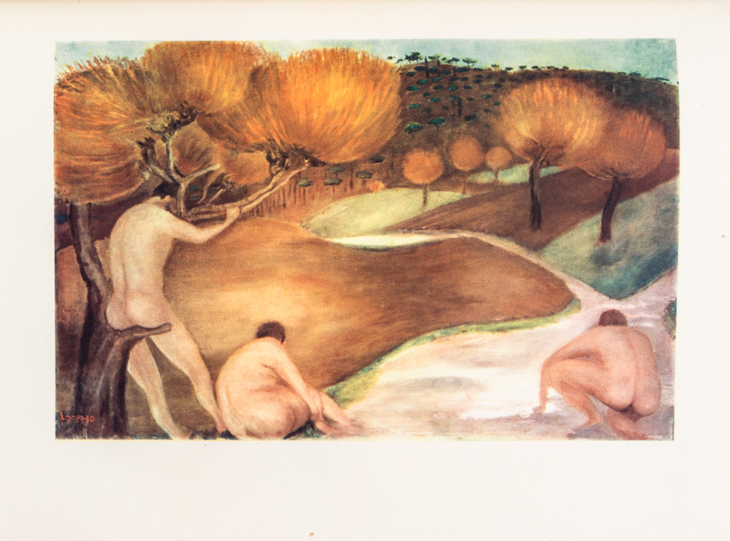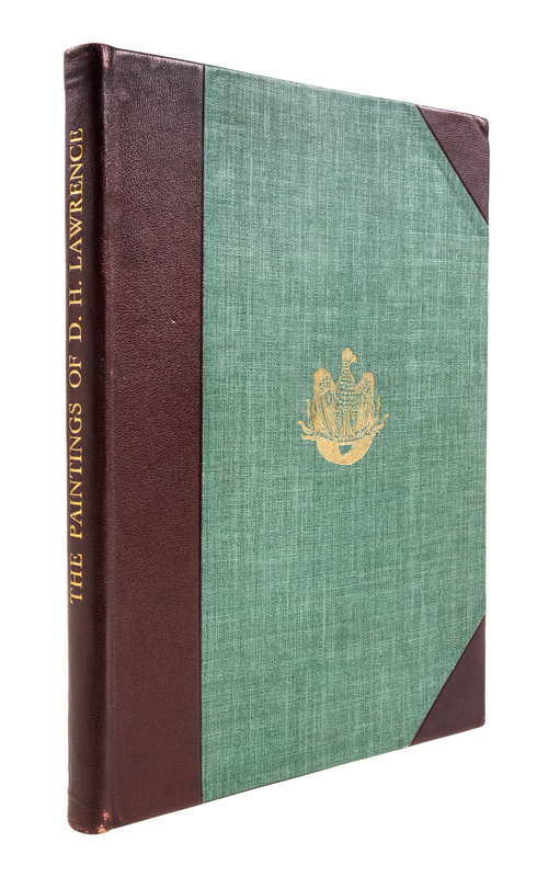 The Paintings of D.H. Lawrence. London: Mandrake Press, 1929. Folio, 3/4 brown calf over gilt-stamped green cloth, gilt-lettered spine, t.e.g. Limited edition, number 468 of 510 copies. With numerous reproduction color illustrations throughout. Minor edgewear.