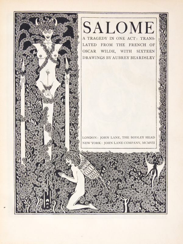 Salome. A Tragedy in One Act. Translated from the French of Oscar Wilde. London and New York: John Lane, The Bodley Head, 1907.8vo, original elaborately gilt-decorated green cloth, t.e.g. With 16 platesby Aubrey Beardley. Minor rubbing and soiling to boards; light offsetting from plates.