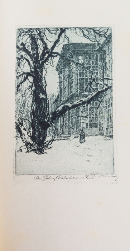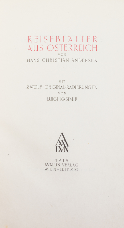 Reiseblatter aus Osterreich. Vienna and Leipzig: Avalun-Verlag, 1919.8vo, gilt-ruled and stamped white calf, a.e.g. Limited to 350 copies of which this is number 16, signed by the artist. Complete with 12 etched plates by Luigi Kasimir. Soiling to calf; scattered brownspotting.