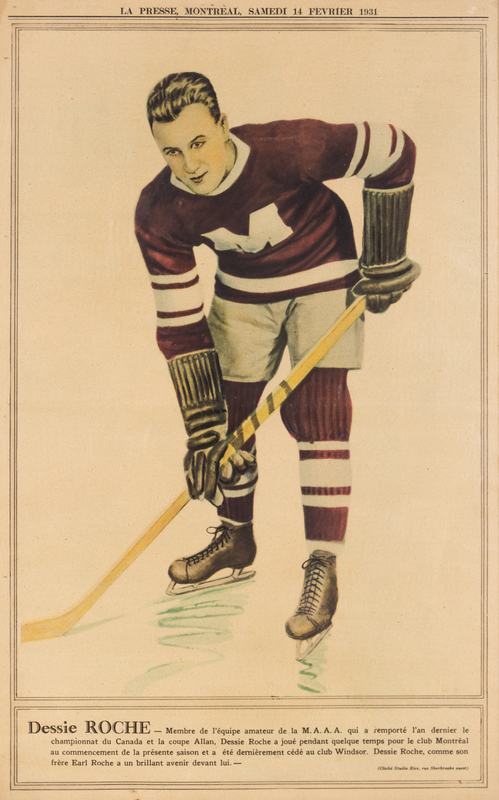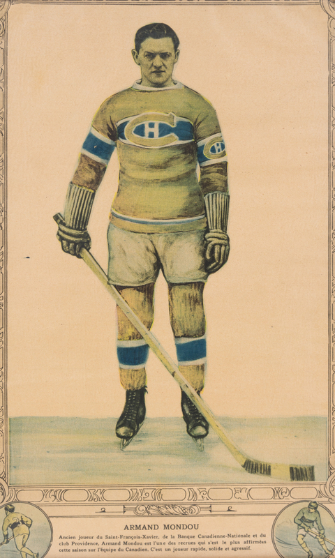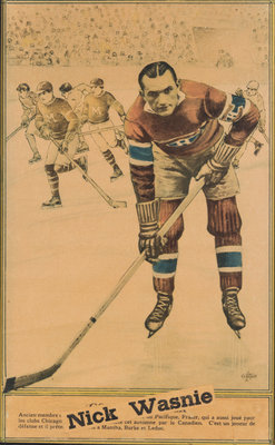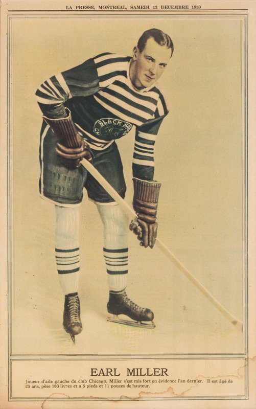 A collection of nine large format lithographed hockey cards issued by La Presse, Montreal, 1930-1932, including five Chicago Blackhawks players, Marin Burke, Nick Wasnie, Earl Miller, Armand Mondou, and Art Somers.