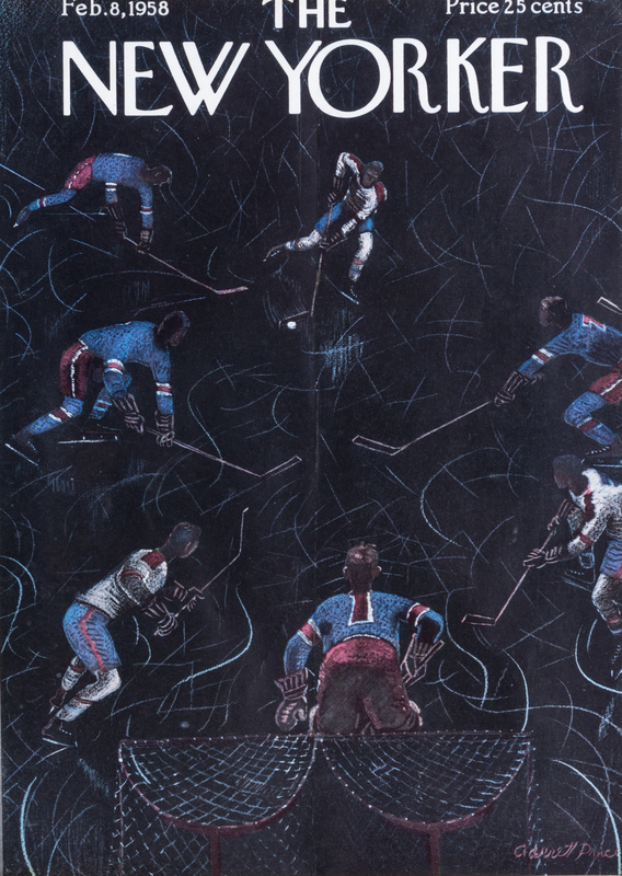Five hockey-themed covers of The New Yorker, November 1959 - January 2003. Uniformly framed and matted.