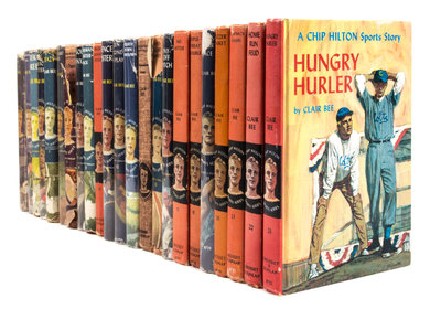 A complete run of 23 books from the Chip Hilton Sports Series, New York: Grosset & Dunlap, various dates. Including a first edition of the rare final title, Hungry Hurler, as issued without a dust jacket, with "8723" at base of the spine. 23 vols. 8vo, publisher's cloth, most with dust jackets. Some jackets worn and chipped; leaves toned.