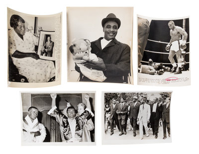 A group of five photographs from the National Enquirer archives, with original stamps and captions to verso, and credit to United Press International Photo.