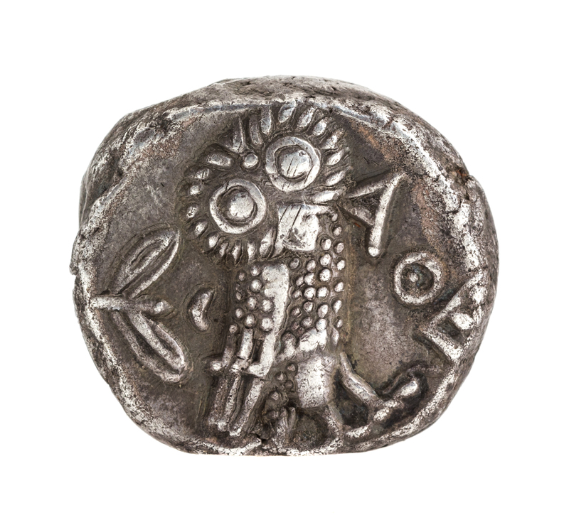 Featuring the head of Athena on obverse, owl on reverse.