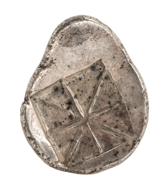 Featuring a Selinon leaf on obverse and an eight-panel square on reverse.