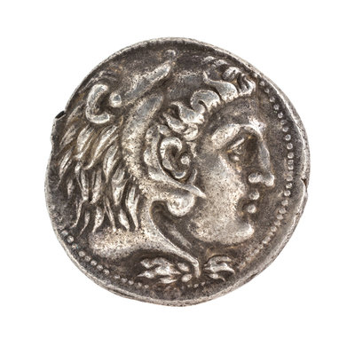 Featuring Alexander the Great as Herakles on obverse, Jupiter enthroned on reverse.