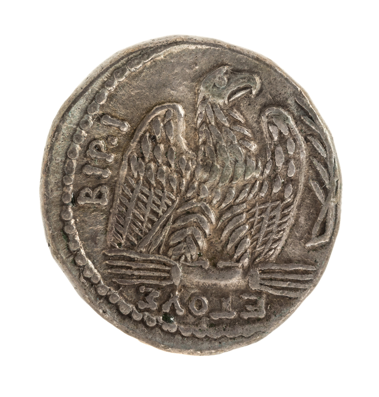Featuring a profile of Emperor Nero on obverse, eagle on reverse.