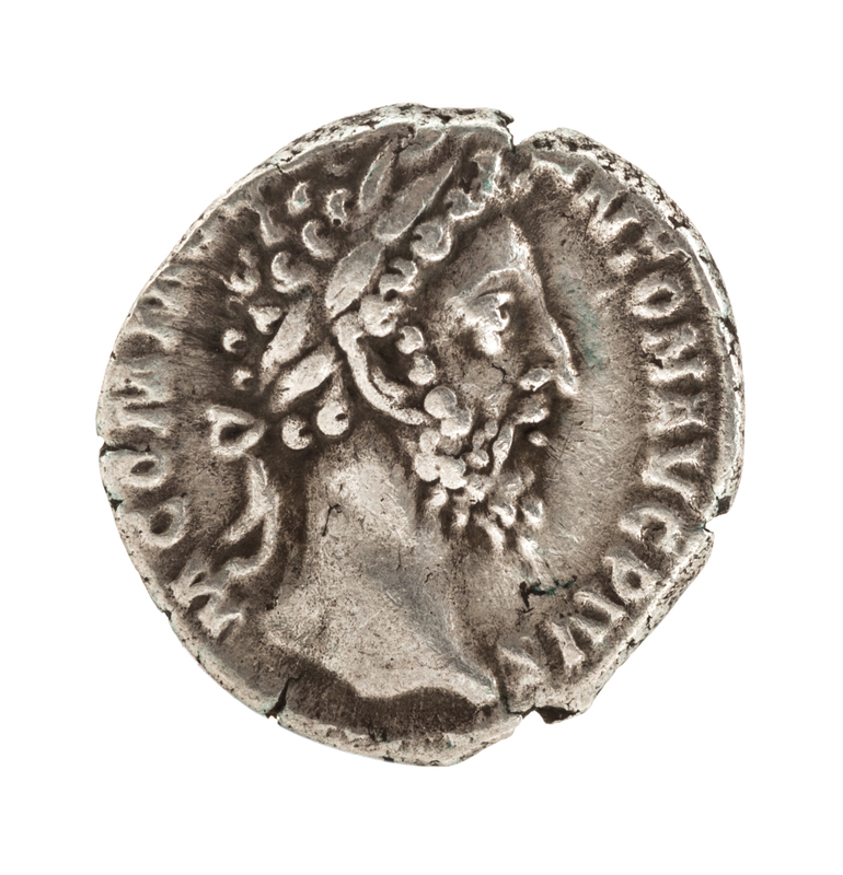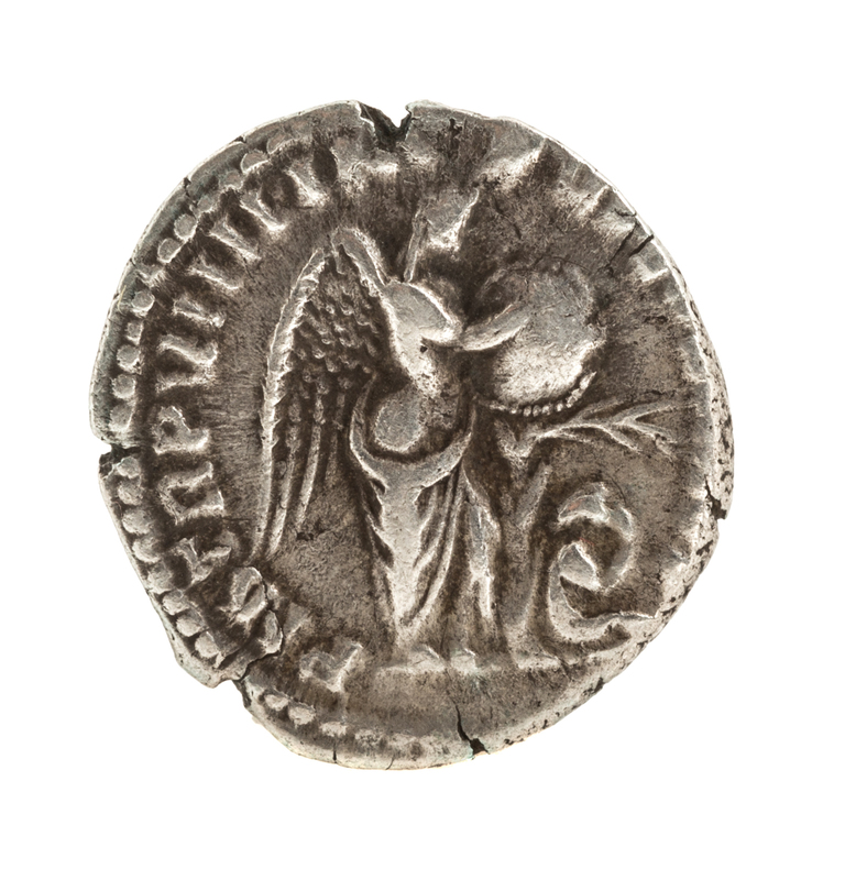 Featuring Emperor Commodus crowned with laurels on obverse, winged Victory on reverse.
